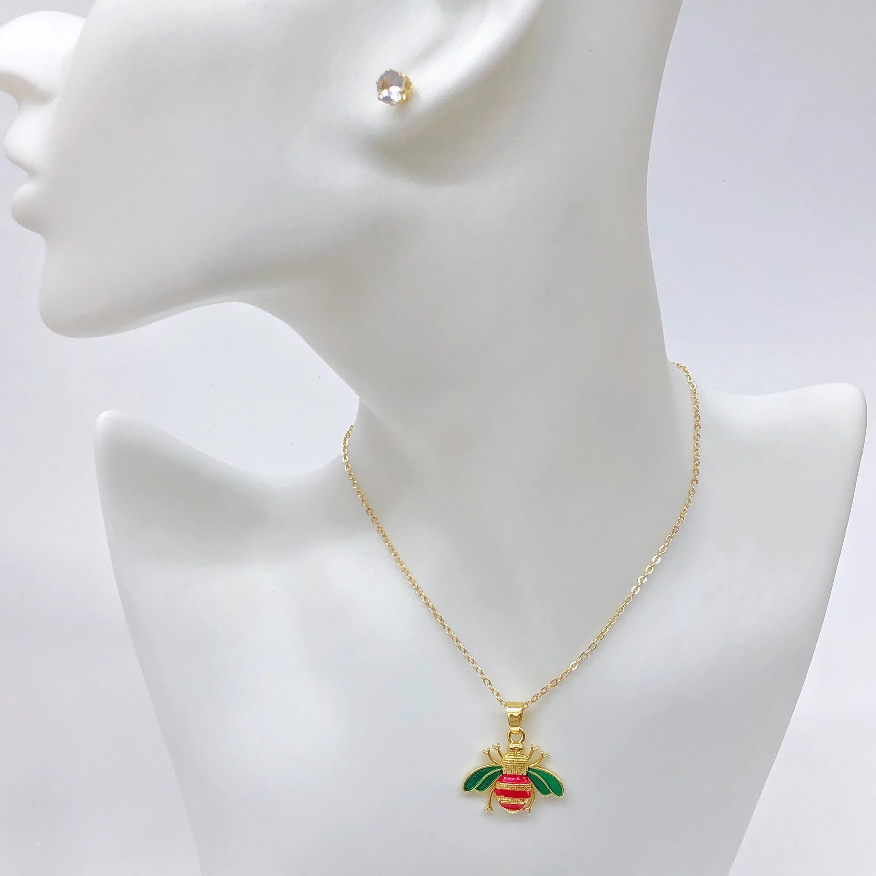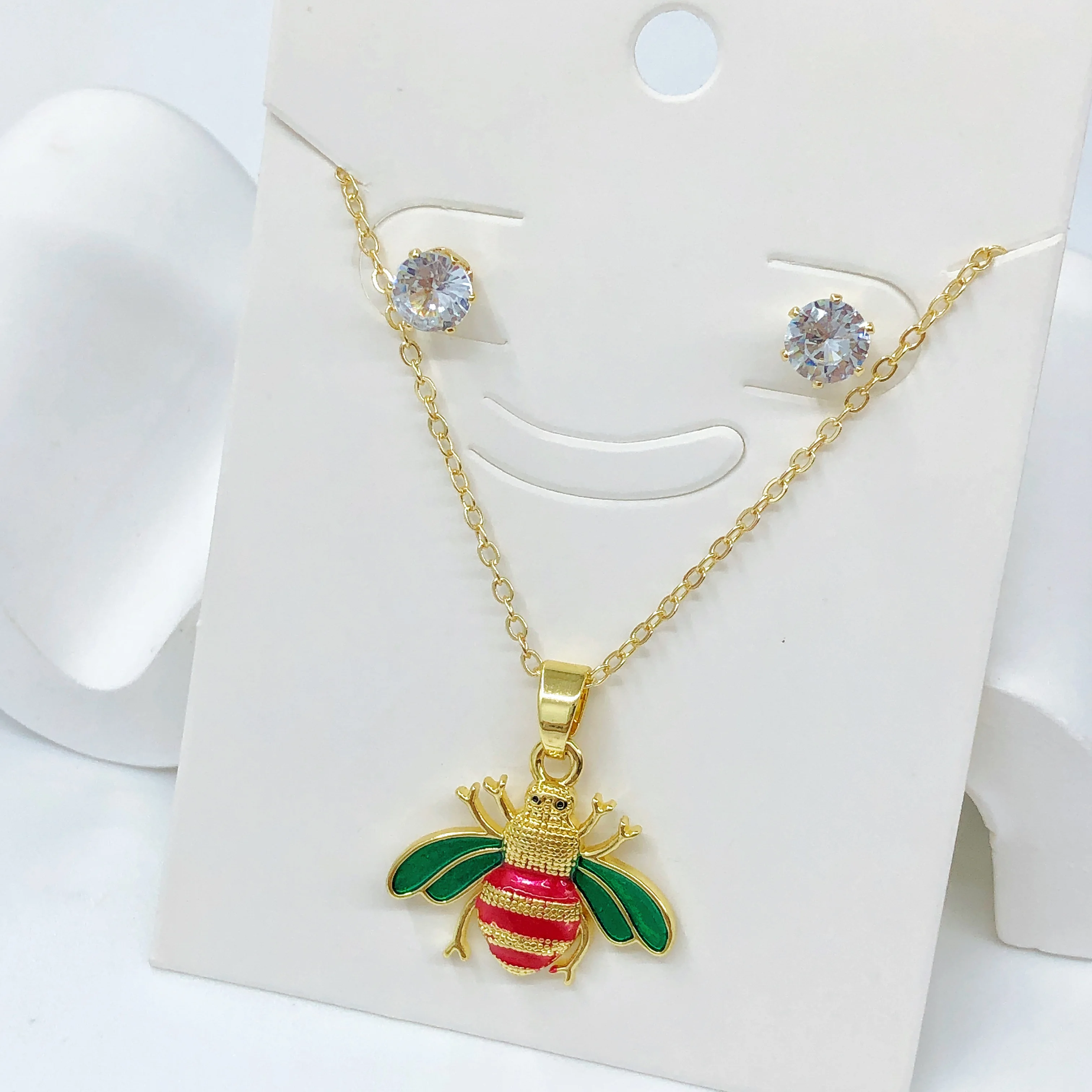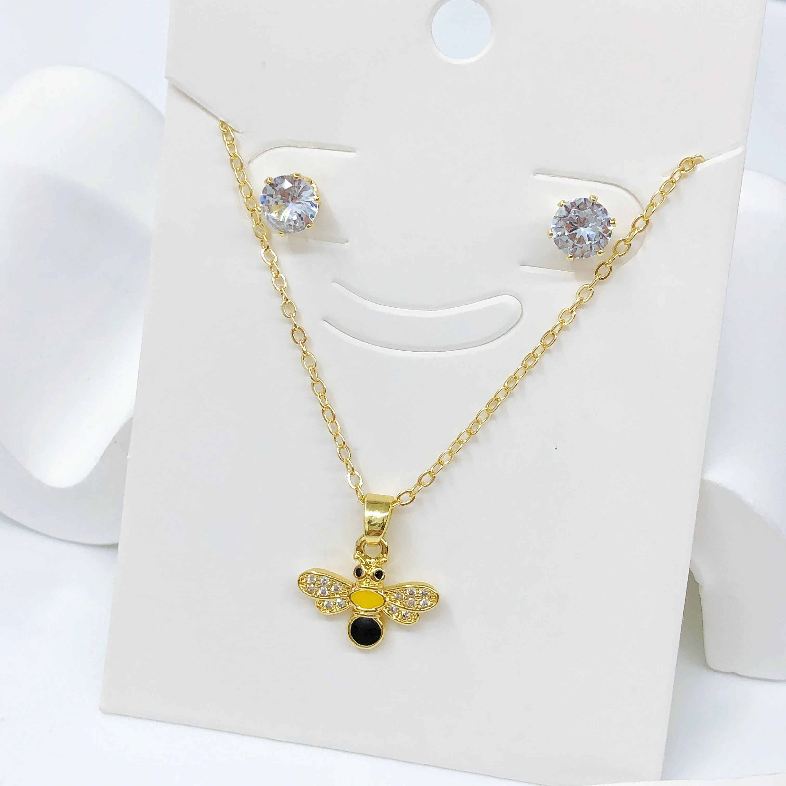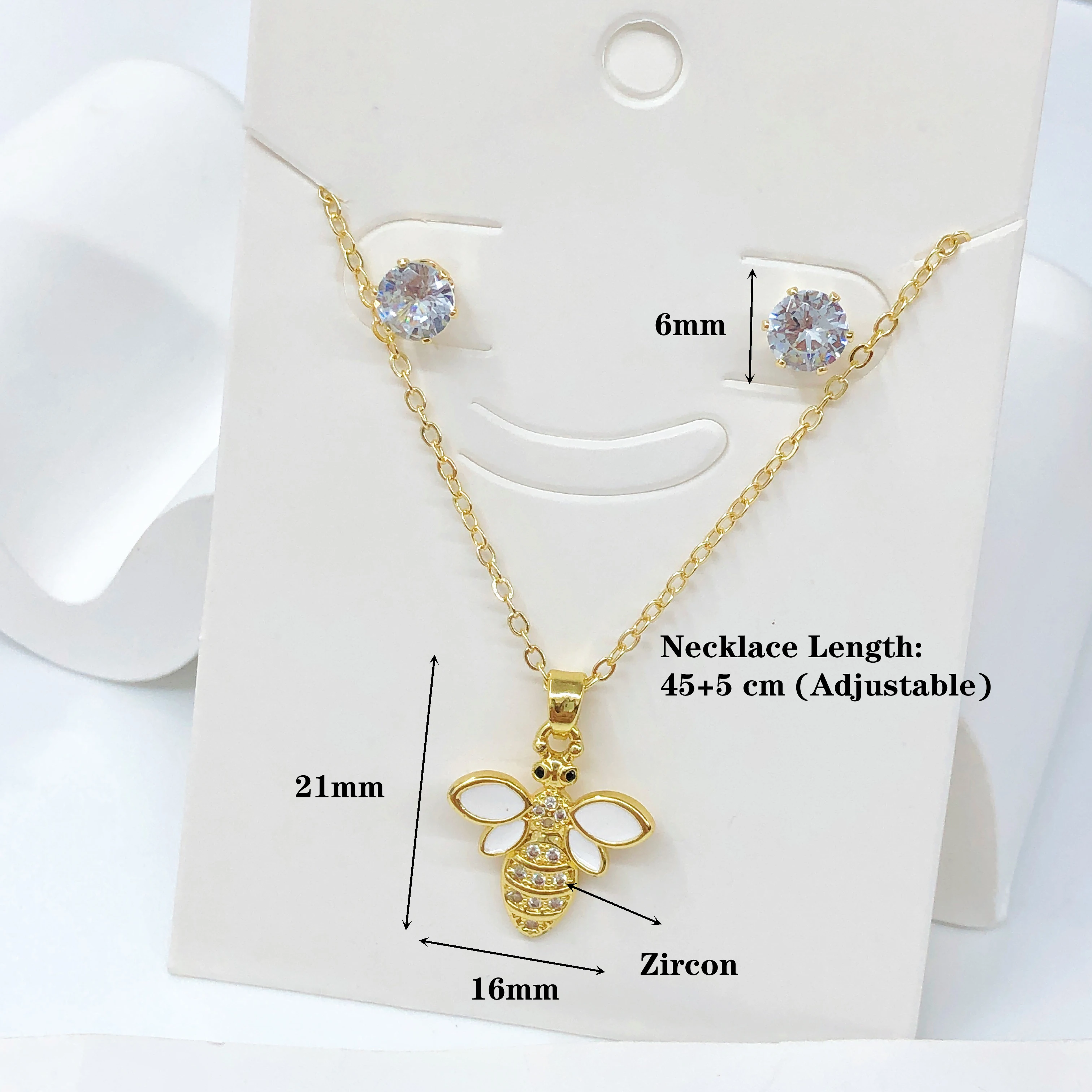 Name: 2Pcs Cute Insect Bee Zircon Jewelry Set Necklace Earrings New Fashion Women's Daily Party Jewelry Girls' Exquisite Gift