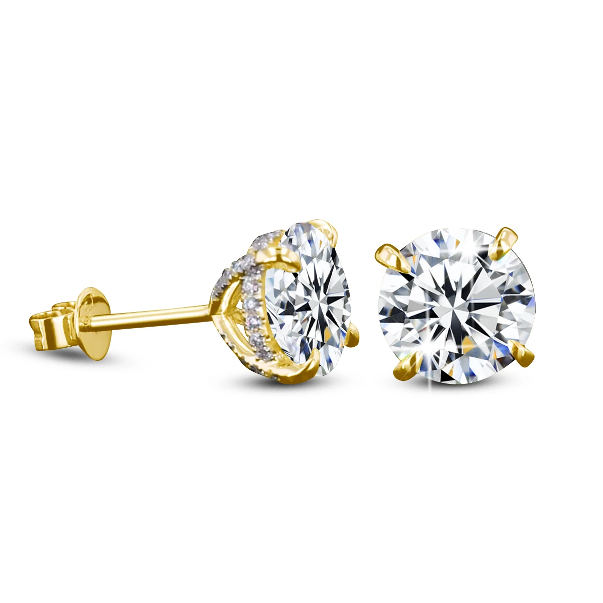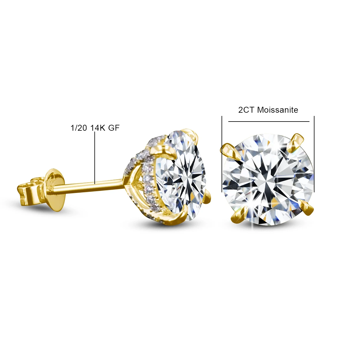 AU585 14K Gold Filled Round Moissanite Ear Studs Women Men Couple Piercing Earring Wedding Daily Wear Jewelry