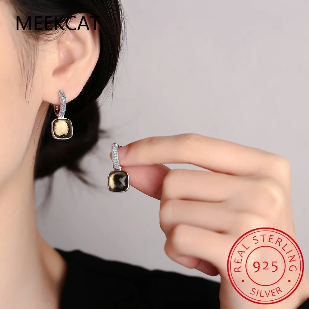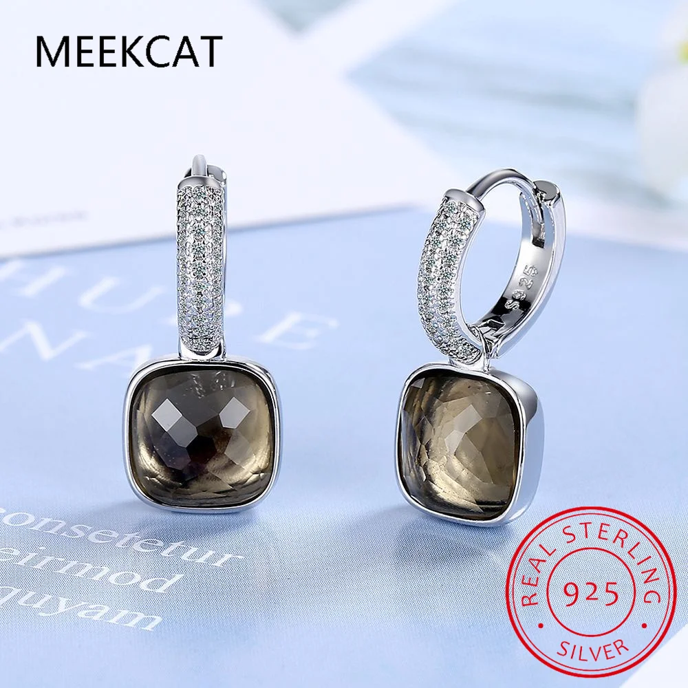 Large 7ct Genuine Smoky Quartz 925 Sterling Silver Dangle Drop Earrings for Women Statement Gemstone Earings