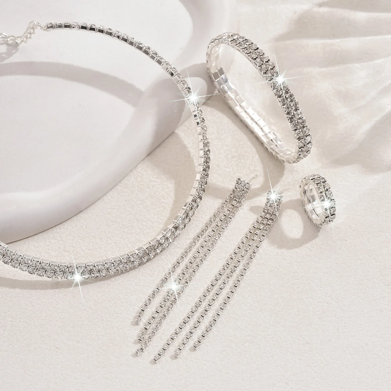 Luxury Full Crystal Zircon Neck Choker for Women Girl Sparkling Rhinestones Clavicle Chain Necklace Charm Wedding Party Jewel